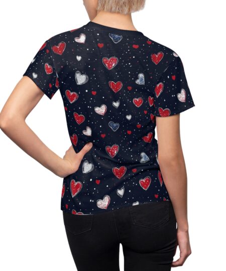 Women’s Heart-Print Tee — Red & Blue Watercolor Hearts All-Over Print