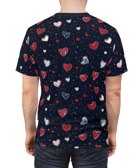 All-Over Heart Pattern Tee — Navy Valentine AOP Shirt