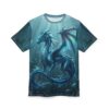 Dive into the deep with this all-over printed tee that brings a luminous sea dragon to life across every seam. The artwork wraps the torso in swirling aquamarine currents, pearlescent scales and gentle rays of light, creating a sense of quiet underwater motion. Lightweight, quick-drying polyester keeps the colors vivid wash after wash, while a ribbed collar and shoulder tape maintain fit and shape. Wear it when you want to feel adventurous and a little otherworldly — whether you’re sketching at a café, heading to a fantasy convention, or layering it for a coastal evening walk. The printed design makes a bold visual statement without shouting; it reads as wearable art for anyone who loves mythic creatures and oceanic moods.