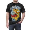 This all-over print tee brings street energy to everyday wear. A bold, animated creature bursts across the front in saturated yellows and reds, tongue lolling and drool dripping into a graffiti-style splash that reads “Catch You.” The background’s smoky black tie-dye gives the design depth and attitude while the soft, quick-dry polyester keeps the print crisp and the shirt light. Wear it when you want to stand out on skate runs, at late-night shows, or during hangouts with the crew — it carries a playful, slightly rebellious vibe that reads like a personal statement rather than loud branding.
