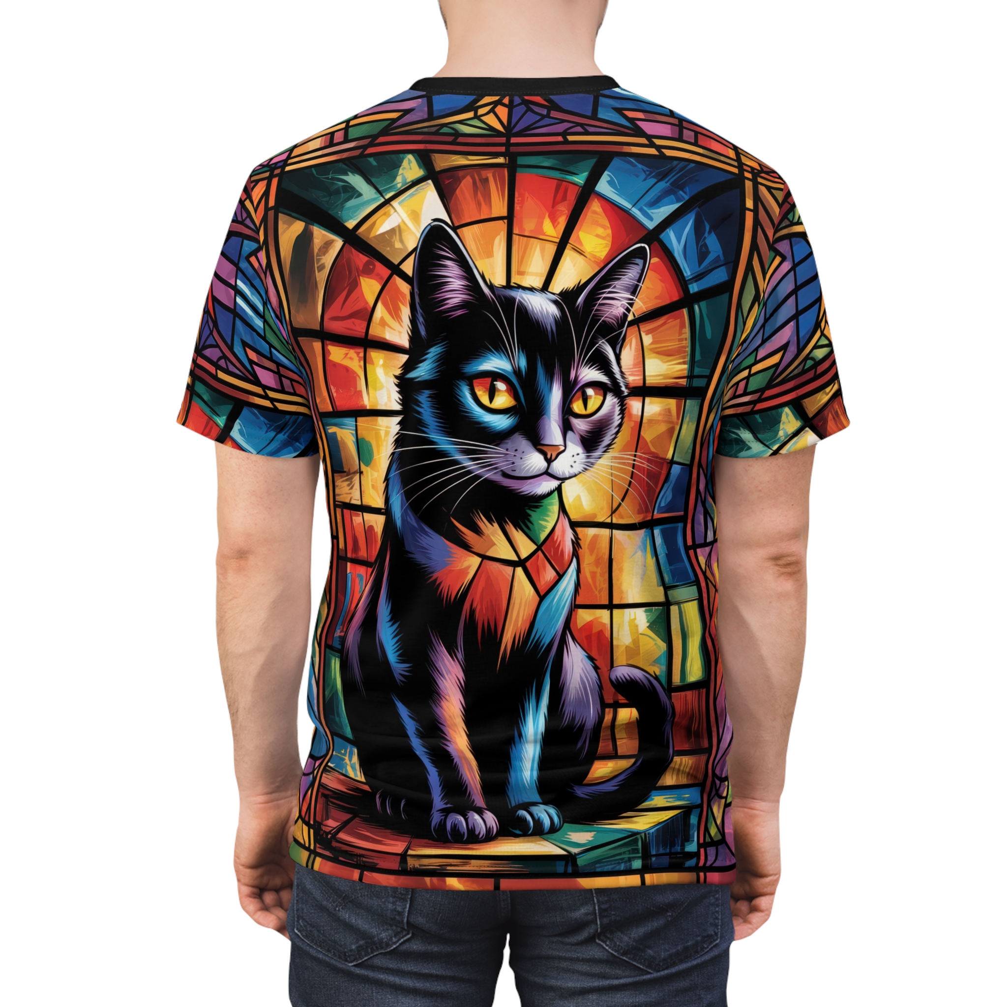 Colorful Cat Stained Glass Tee – For Cat Lovers, Unique Gift, Pet Appreciation