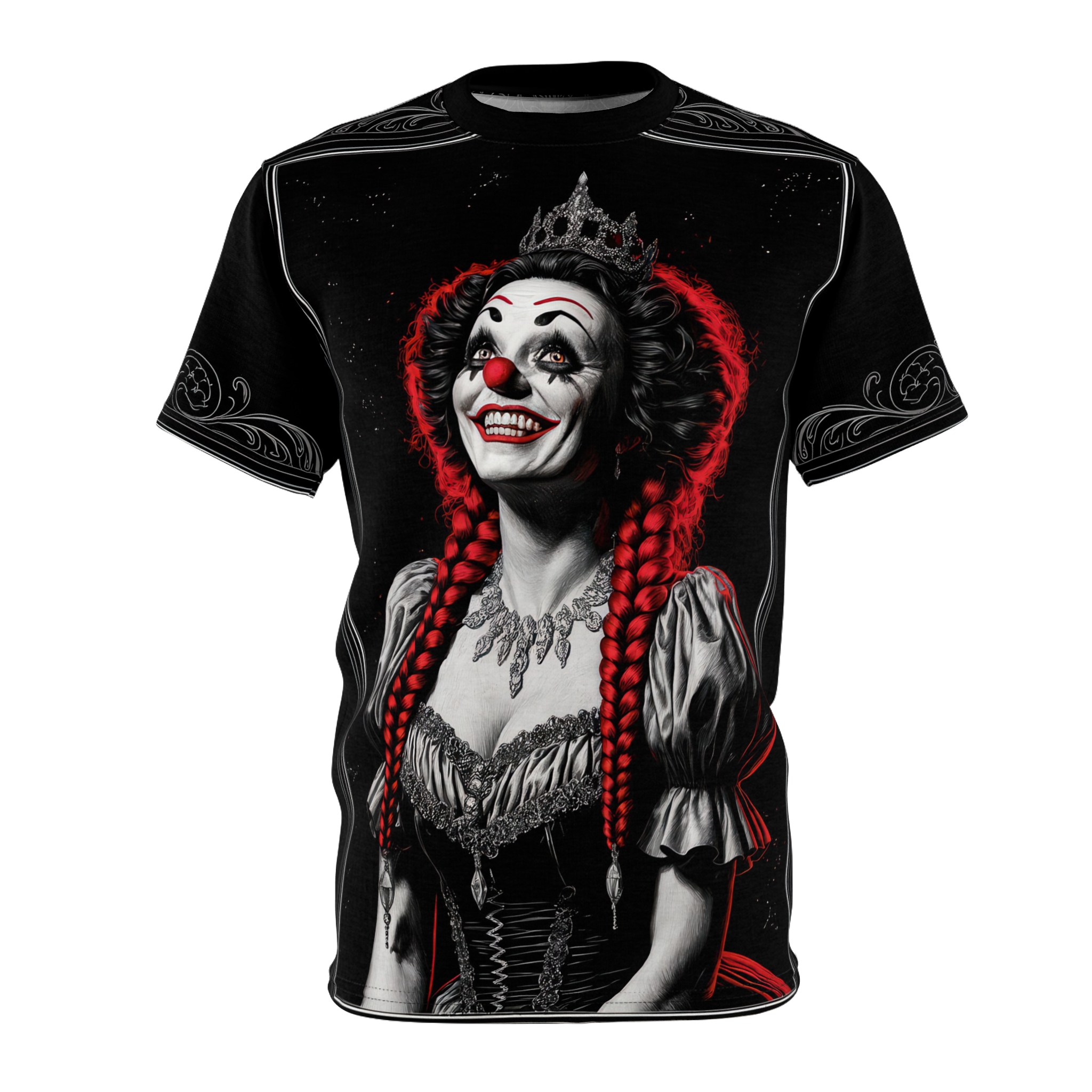 Creepy Clown Unisex All Over Print T-Shirt | Bold Graphic Tee for Halloween Enthusiasts