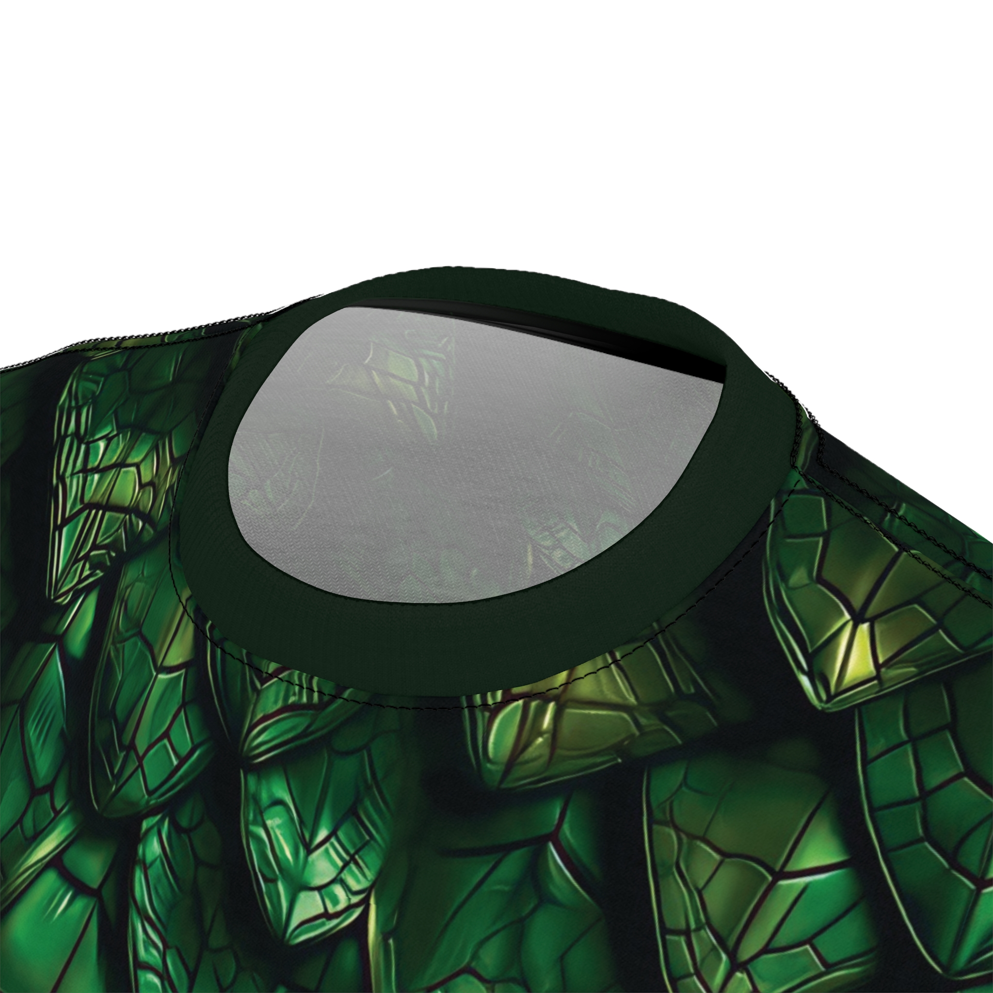 Slip into something bold and a little wild. This all-over print tee echoes the shimmering scales of forest creatures — deep emeralds, shadowed highlights and organic texture that moves with you. It feels confident without shouting, a wearable scene that sparks stories: trekking through misty pines, slipping into character at a con or LARP, or layering under a jacket for nights out. The regular fit and tagless comfort keep the focus on the look, while the durable polyester holds color and pattern wash after wash. Wear it when you want to evoke mystery, nature, and a touch of otherworldly grace.
