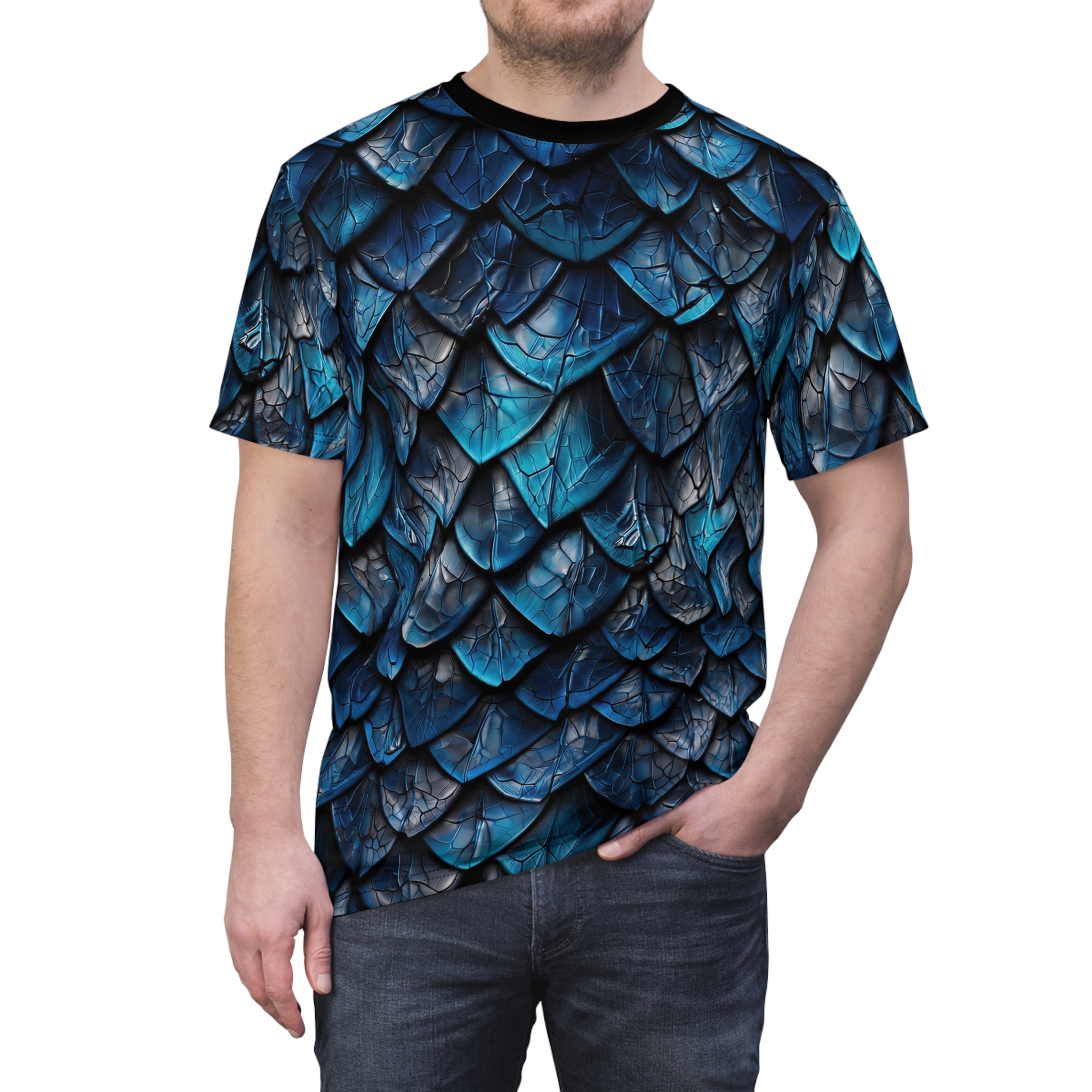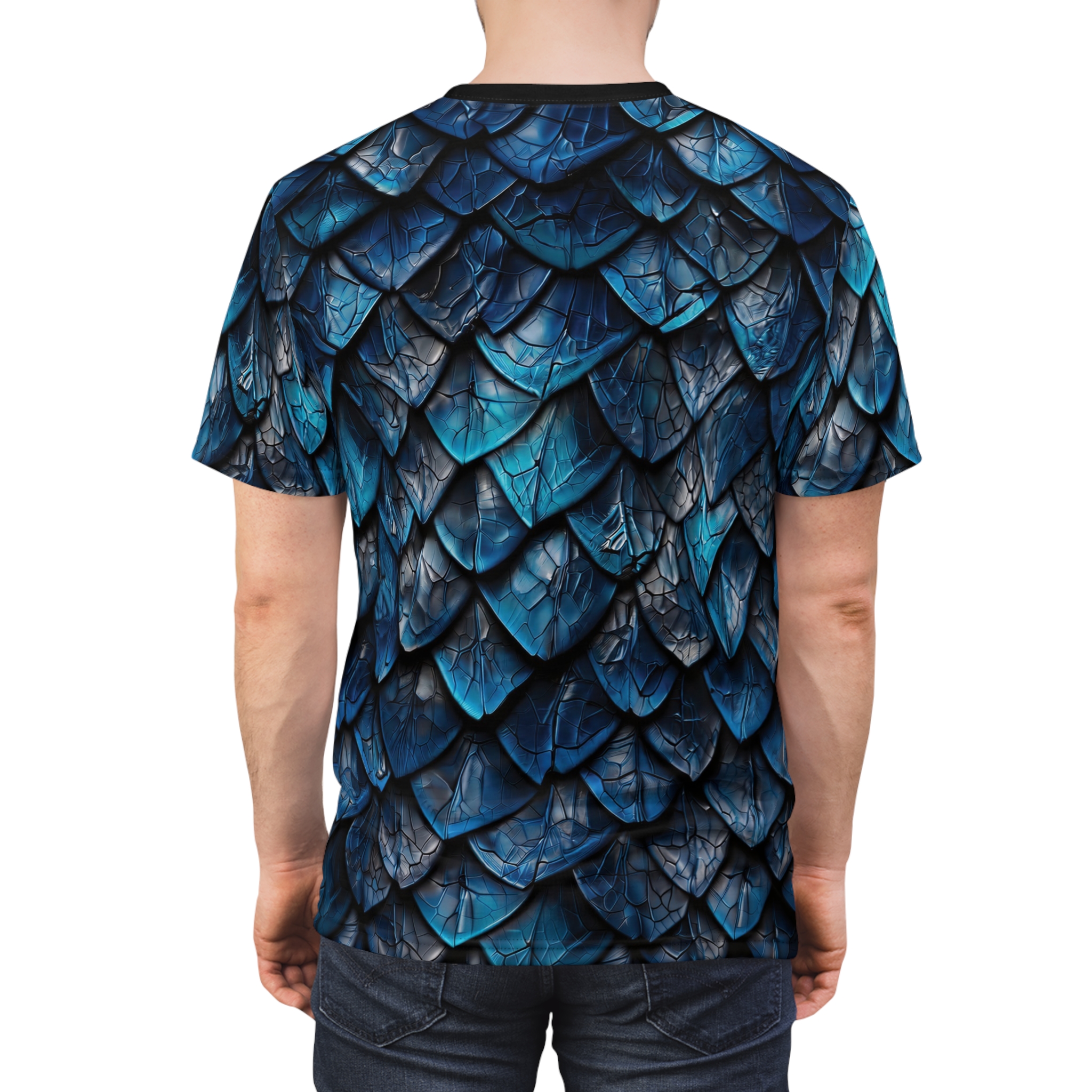 Dragon Scale Tee – Blue Fantasy Scales All Over Print T-Shirt