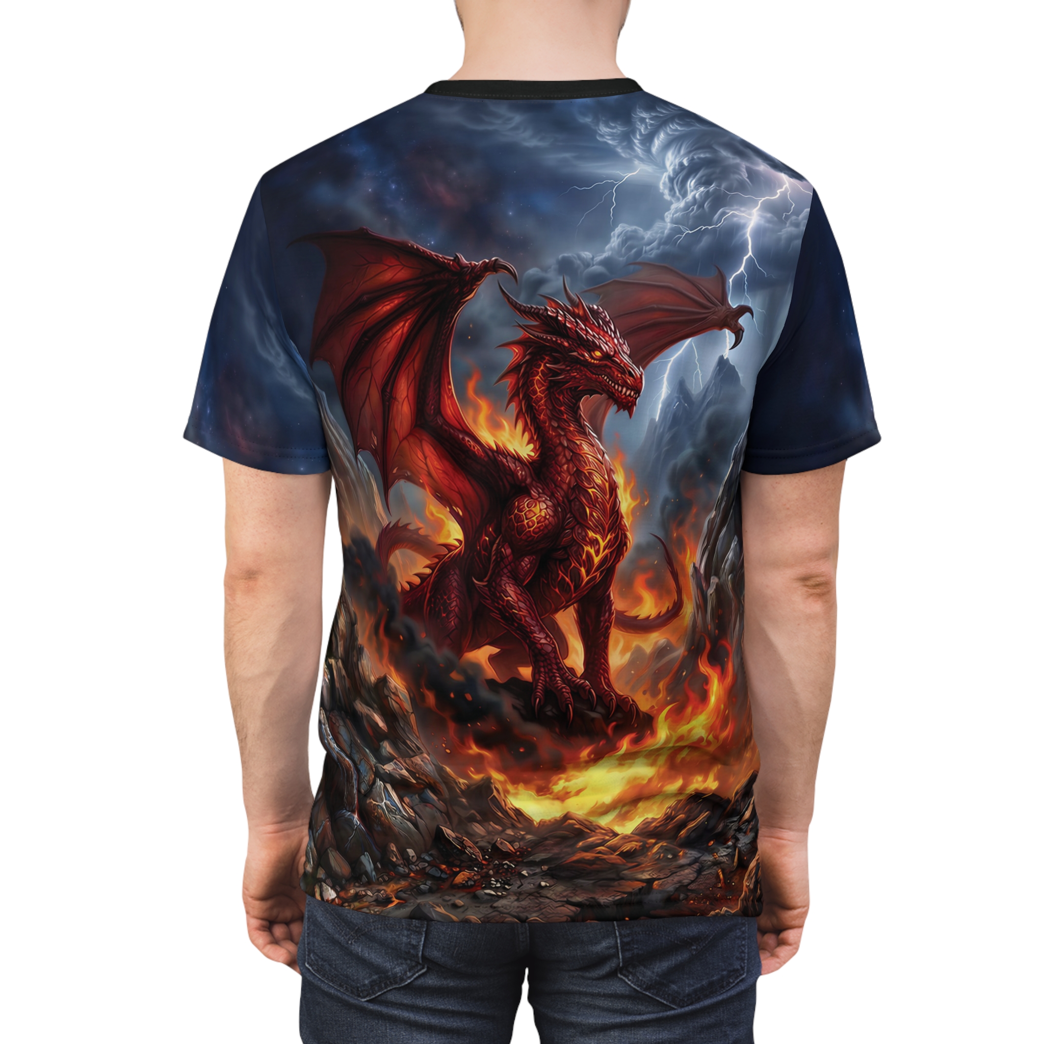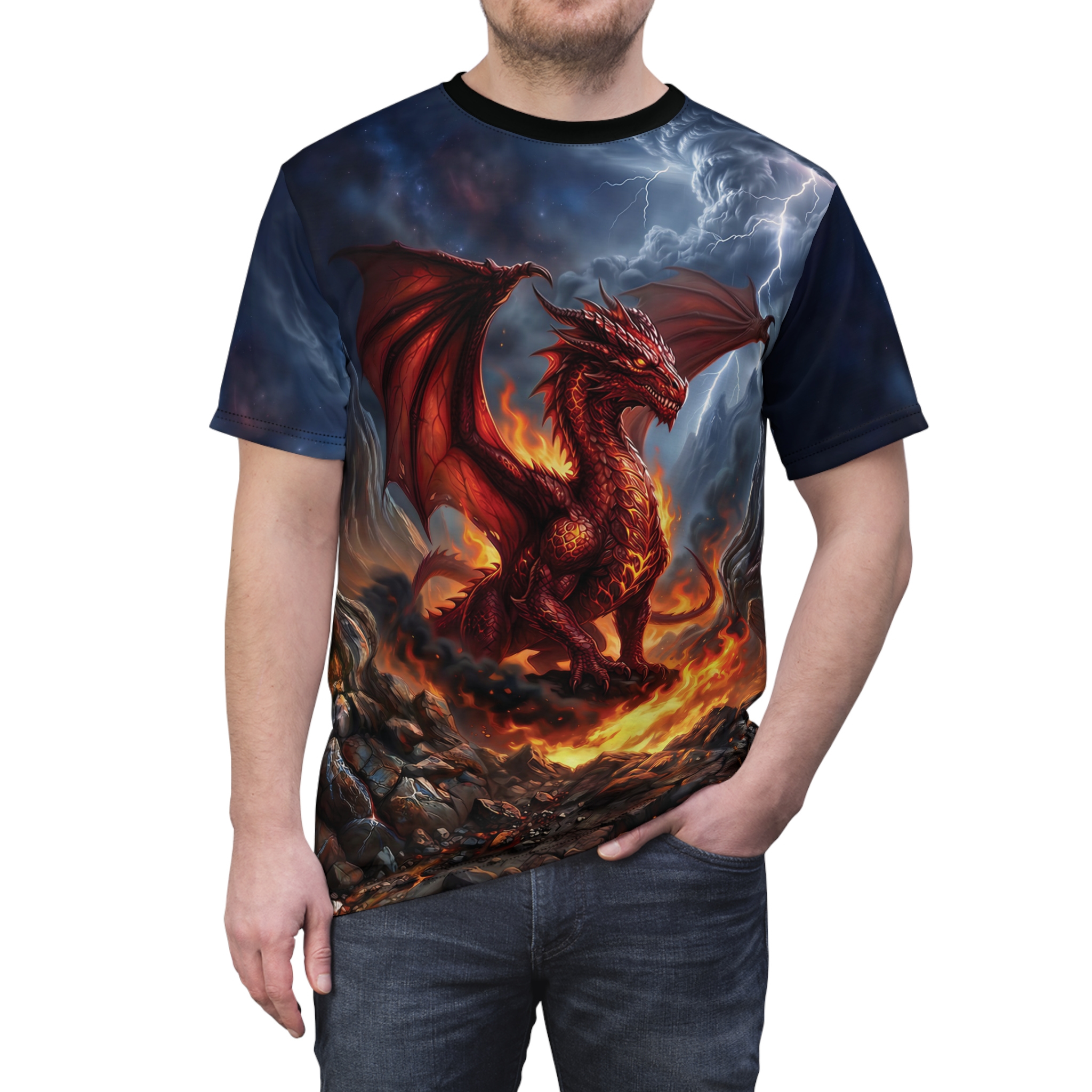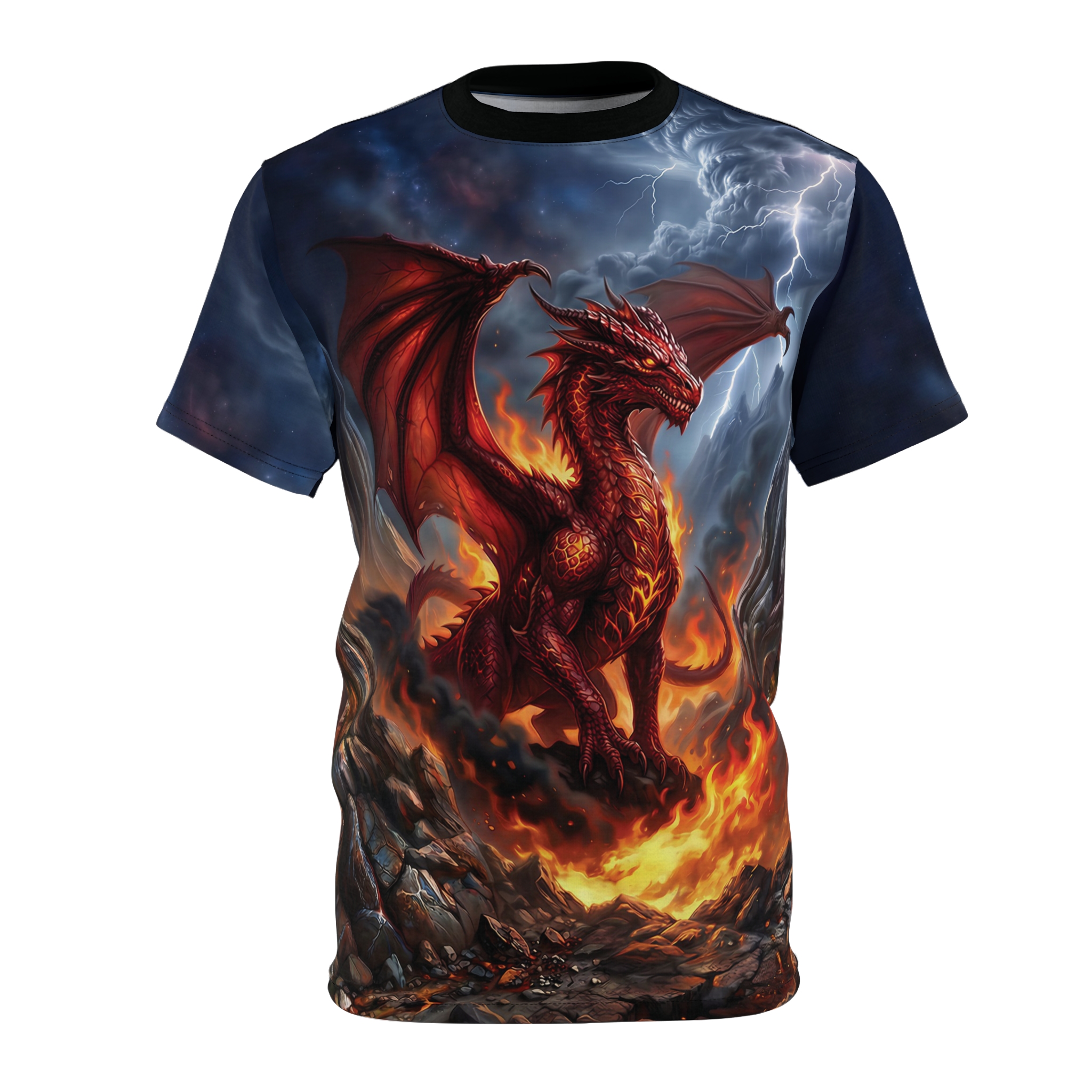 Fire Dragon All-Over Print Tee — Fantasy Dragon Graphic Shirt