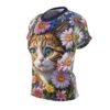 Floral Cat Women’s Tee, Cute Cat Shirt, Animal Lover Gift, Summer Top, Casual Wear, Unique Birthday Present