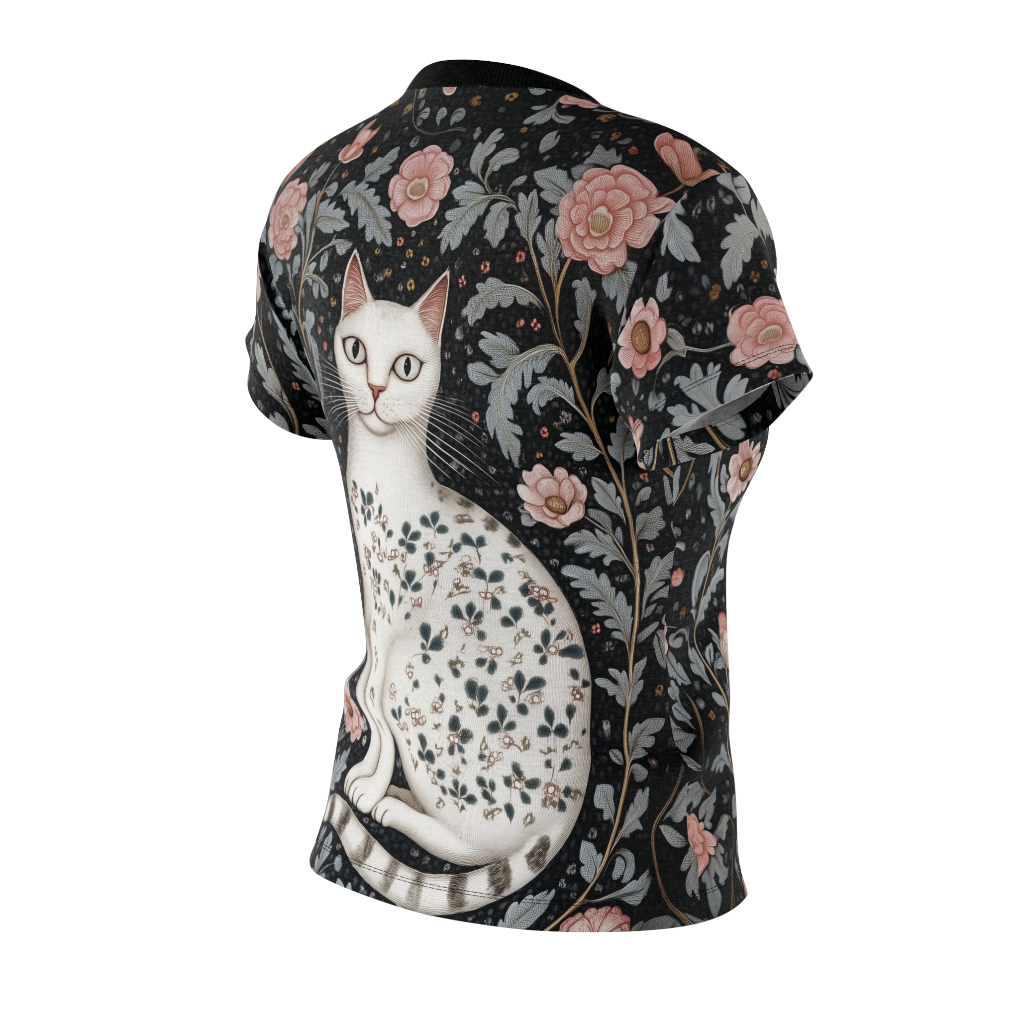 Floral Cat Women’s Tee – Elegant Cat Art Top for Animal Lovers