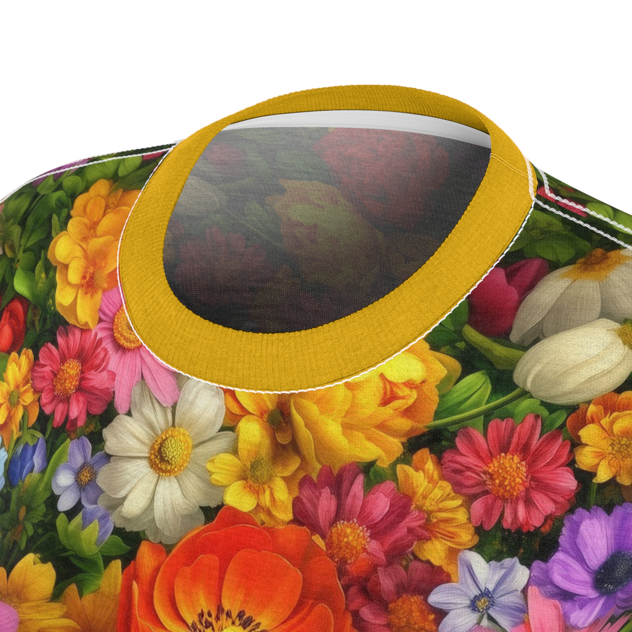 Brighten your wardrobe with this vibrant Women’s All Over Print Tee! This floral design is a celebration of color, bringing the essence of spring and summer blooms right into your everyday outfits. Perfect for casual outings, picnics, or just lounging at home, this tee offers a joyful vibe that’s both refreshing and cheerful. Ideal for women who love unique, eye-catching styles, it makes an excellent gift for birthdays, Mother’s Day, or any celebration where you want to make someone feel special.