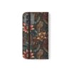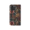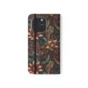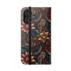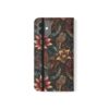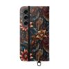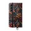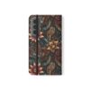 This floral flip case wraps your phone in moody, vintage-inspired charm. Deep jewel tones and layered petals create a textured, artful surface that feels like a worn, treasured find. Open it to find stitched card pockets, a secure polycarbonate shell, and a flat elastic fastening that keeps everything snug. The case folds into a stand for hands-free video or timed photos, and clear port openings keep charging and audio simple. With a D-ring option for recent Galaxy S models, you can add a strap for easy commuting or weekend markets. It’s made from cruelty-free faux leather in South Korea and arrives with care instructions so it stays looking rich and lived-in.