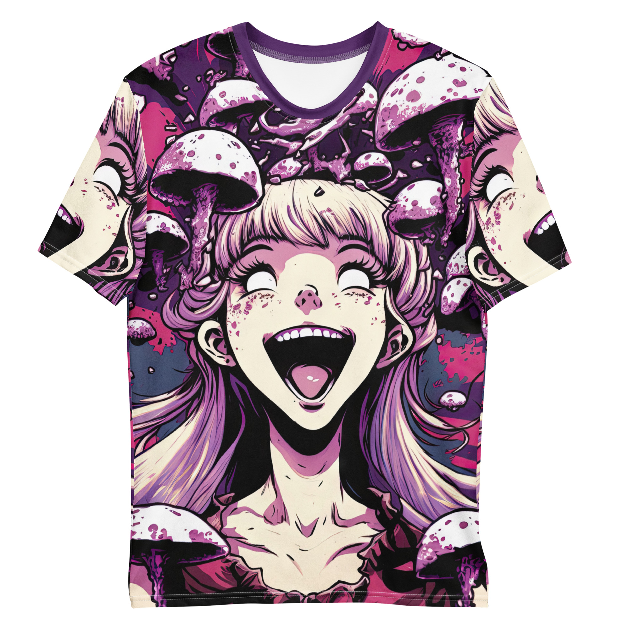 Manga / Anime Girl tripping On Mushrooms Uni-Sex Otaku Graphic T-Shirt V4
