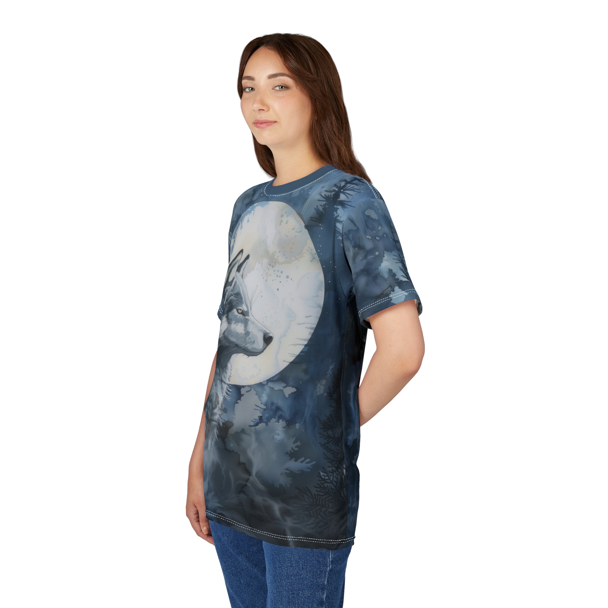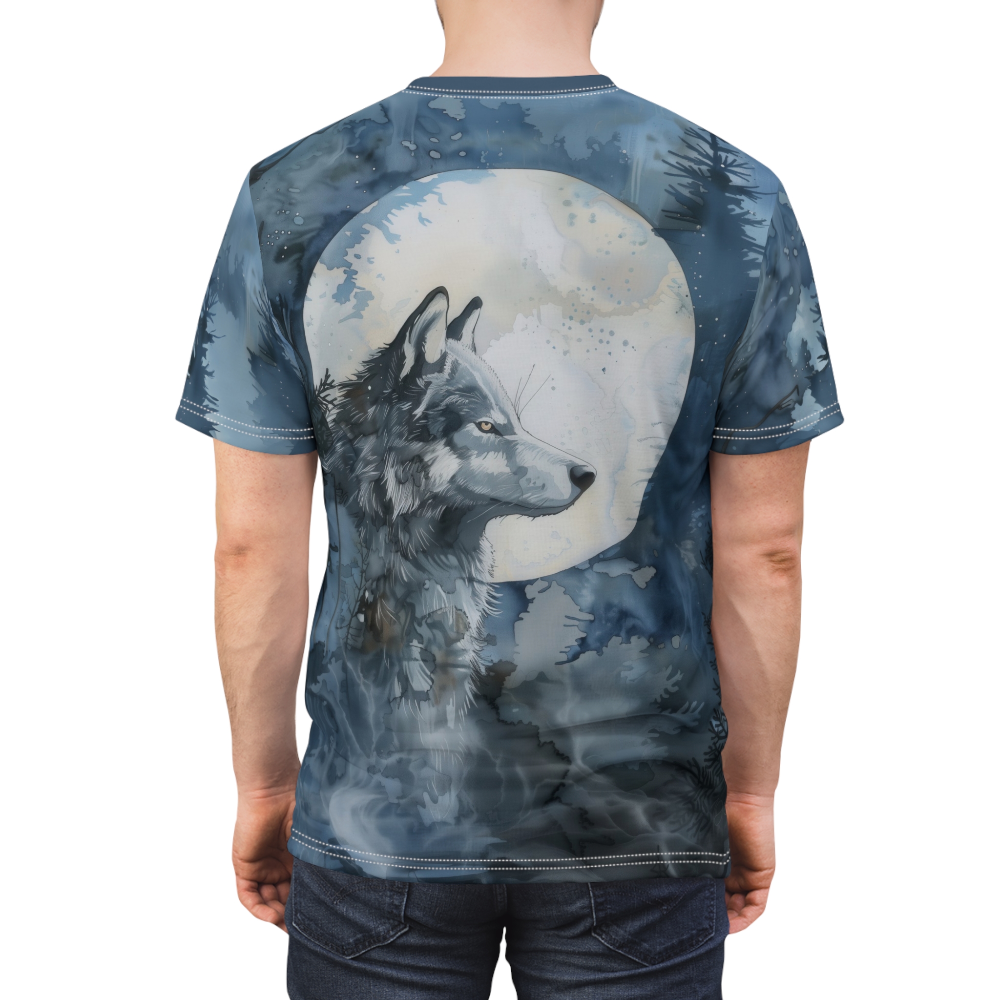 Moonlit Wolf Unisex All Over Print T-Shirt – Animal Lover T-Shirt – Wildlife Design