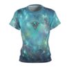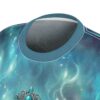 A dreamy, all-over print tee that feels like wearing a piece of the night sky. Soft turquoise and teal swirls slide into starlit flecks, and a small ornate turquoise pendant motif rests over the heart. Lightweight and breathable, this tee moves with you—whether you’re wandering a moonlit path, sketching by lamplight, or layering for a market day. It reads like quiet magic: subtle, personal, and worn by someone who notices small wonders. The cut-and-sew construction keeps the print seamless across panels, so the design flows naturally around the body.