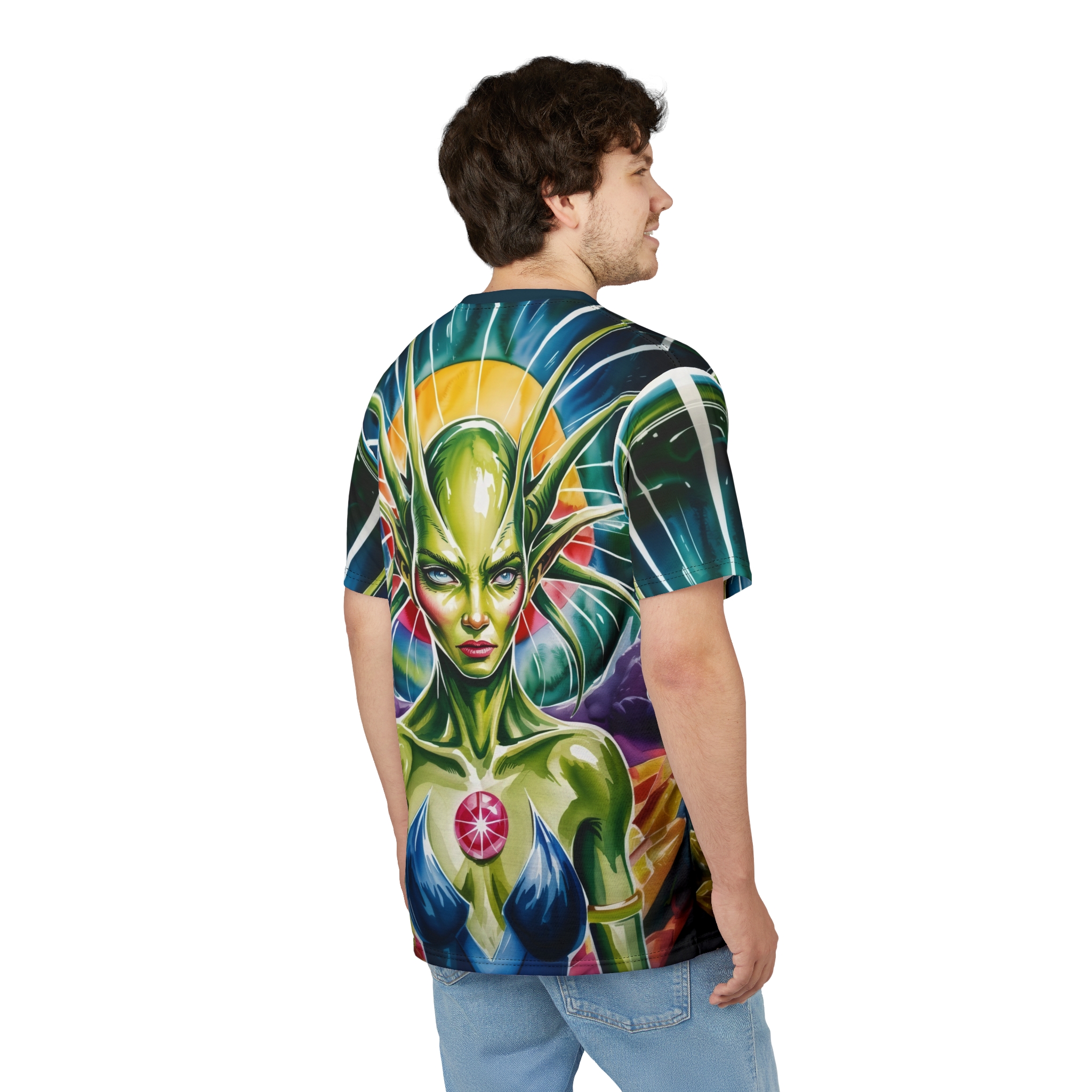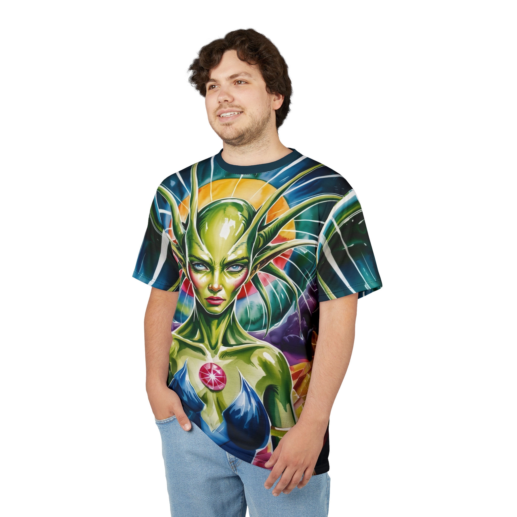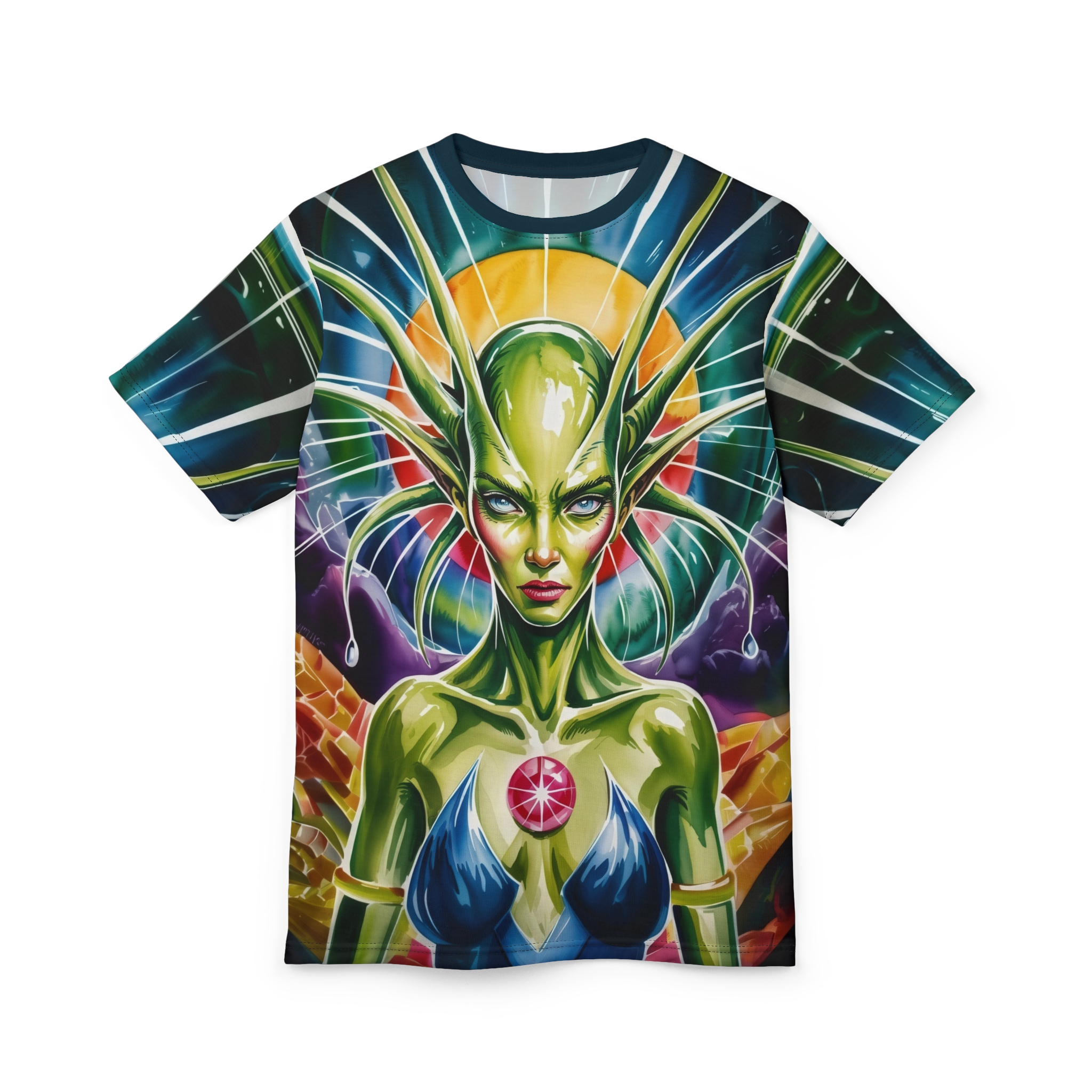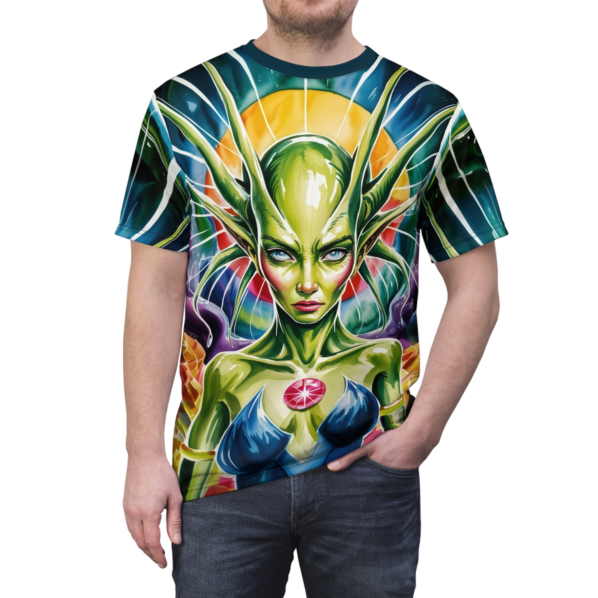 Mystical Alien Graphic Tee, AOP Shirt for Fans of Sci-Fi, Unique Gift for Festivals, Art Lovers, Unisex Clothing