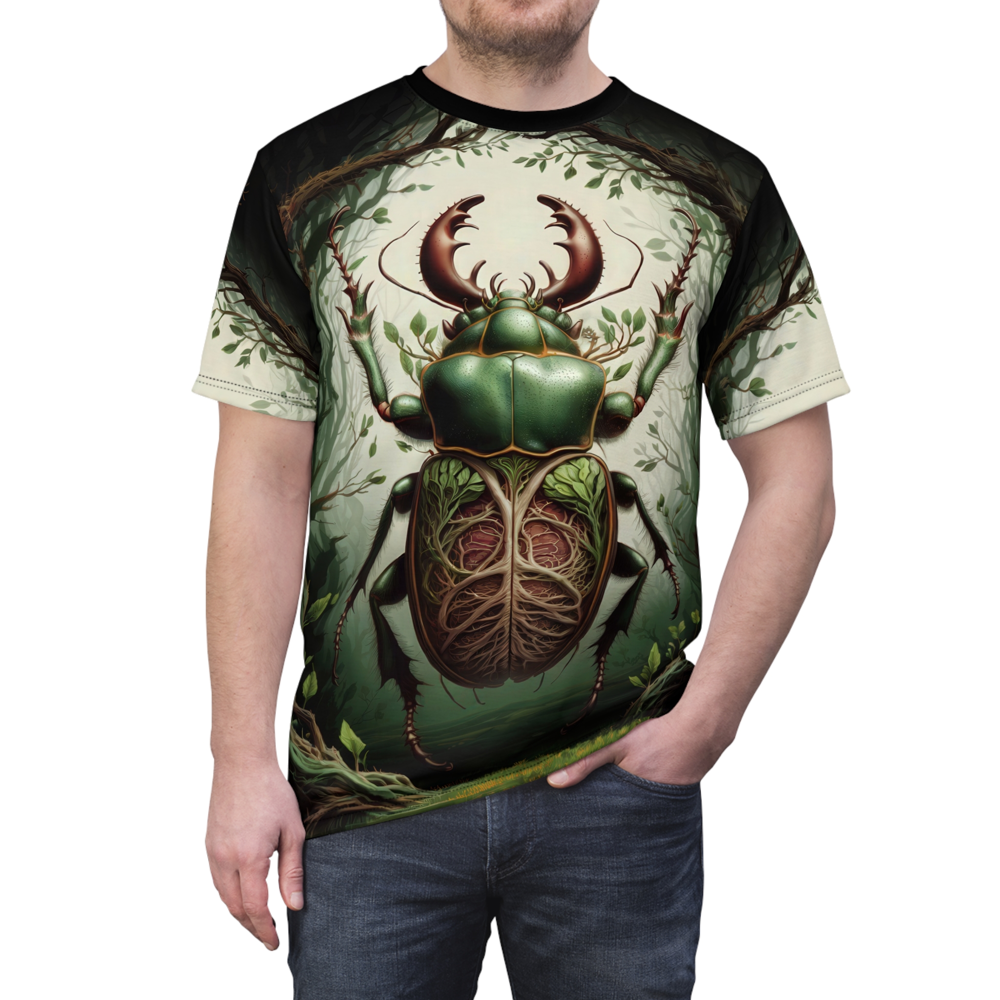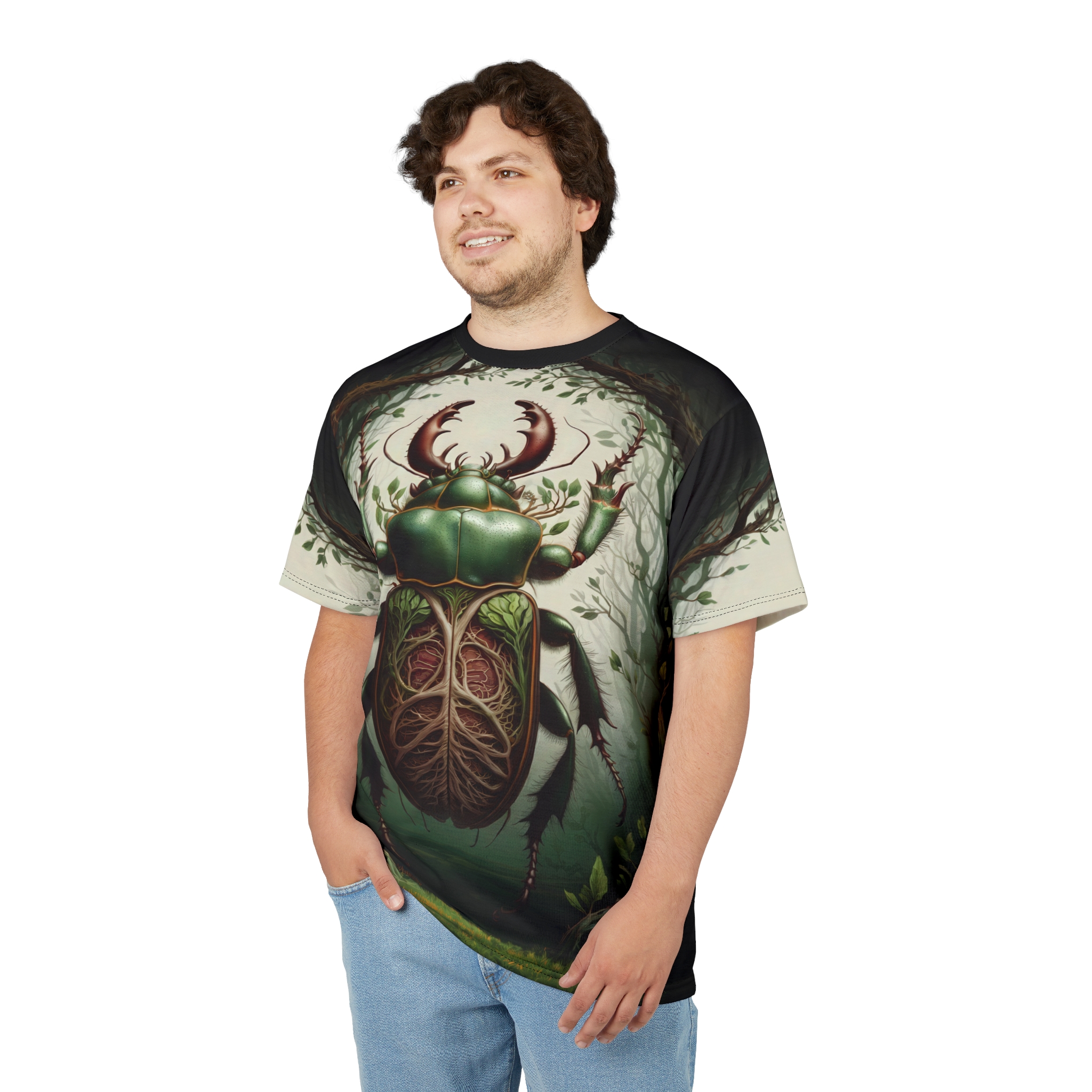 Nature-Inspired Beetle Tee – Eco-Friendly Graphic Shirt, Unisex AOP Tee, Insect Art Fashion, Summer Style