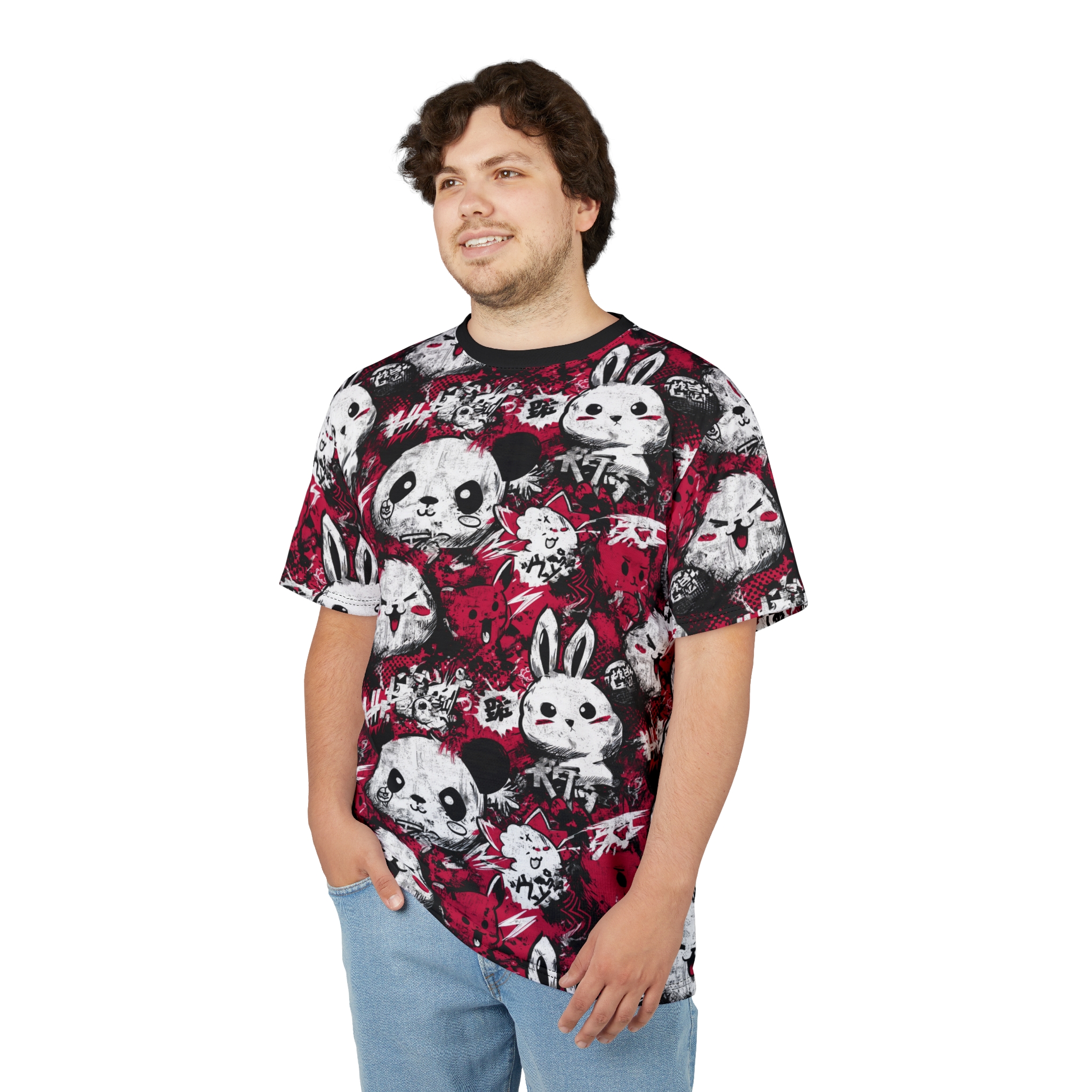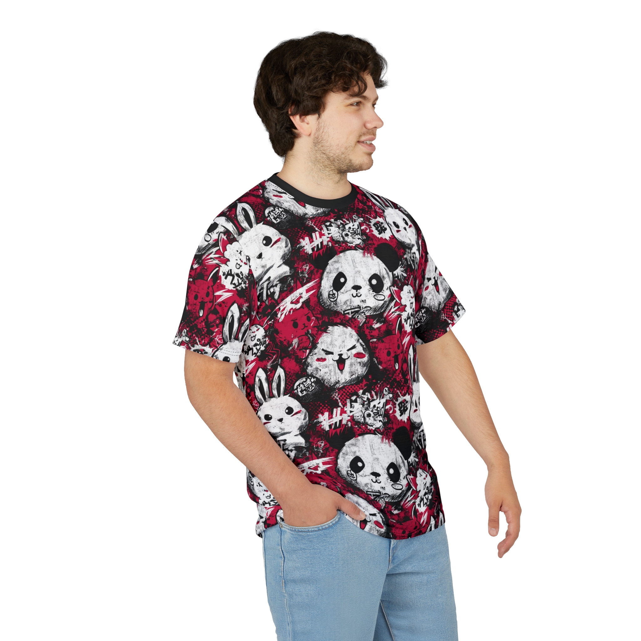 Introducing this vibrant Unisex All Over Print Tee, featuring an adorable and playful panda and bunny print that exudes a sense of fun and whimsy. Perfect for those who want to express their unique style, this tee is a delightful addition to any casual wardrobe. Its all-over print makes it stand out, creating a cheerful vibe whether you’re hanging out with friends or enjoying a festival. Ideal for anyone young at heart, this shirt makes a great gift for birthdays, holidays, or just because. Celebrate everyday moments in style, or wear it during special occasions like family gatherings and themed events.