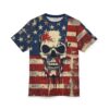 Patriotic 4th July Skull Graphic Tee – Unisex All Over Print T-Shirt for Independence Day and Casual Wear