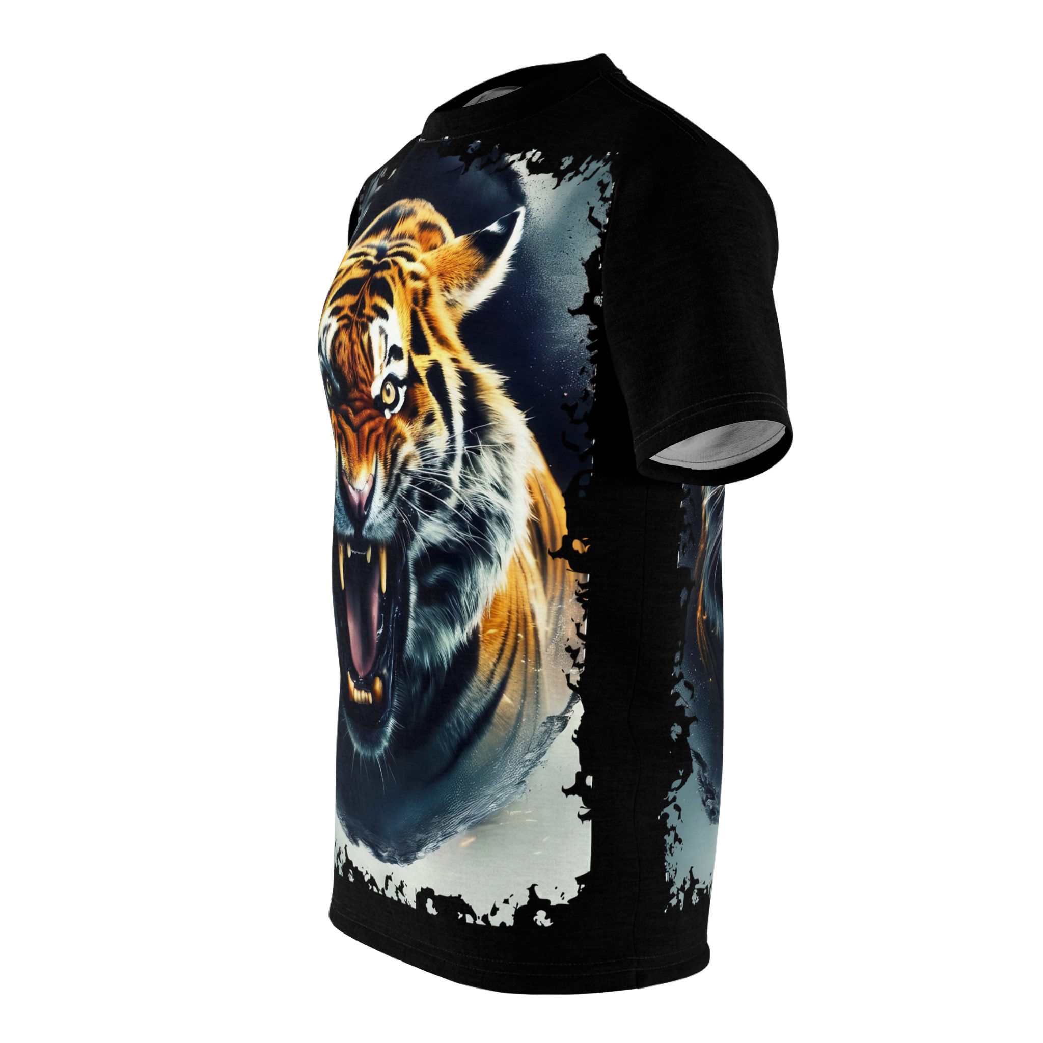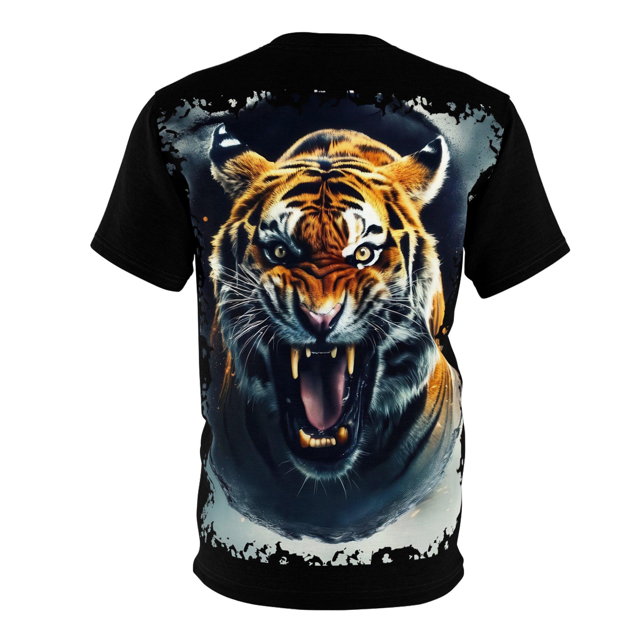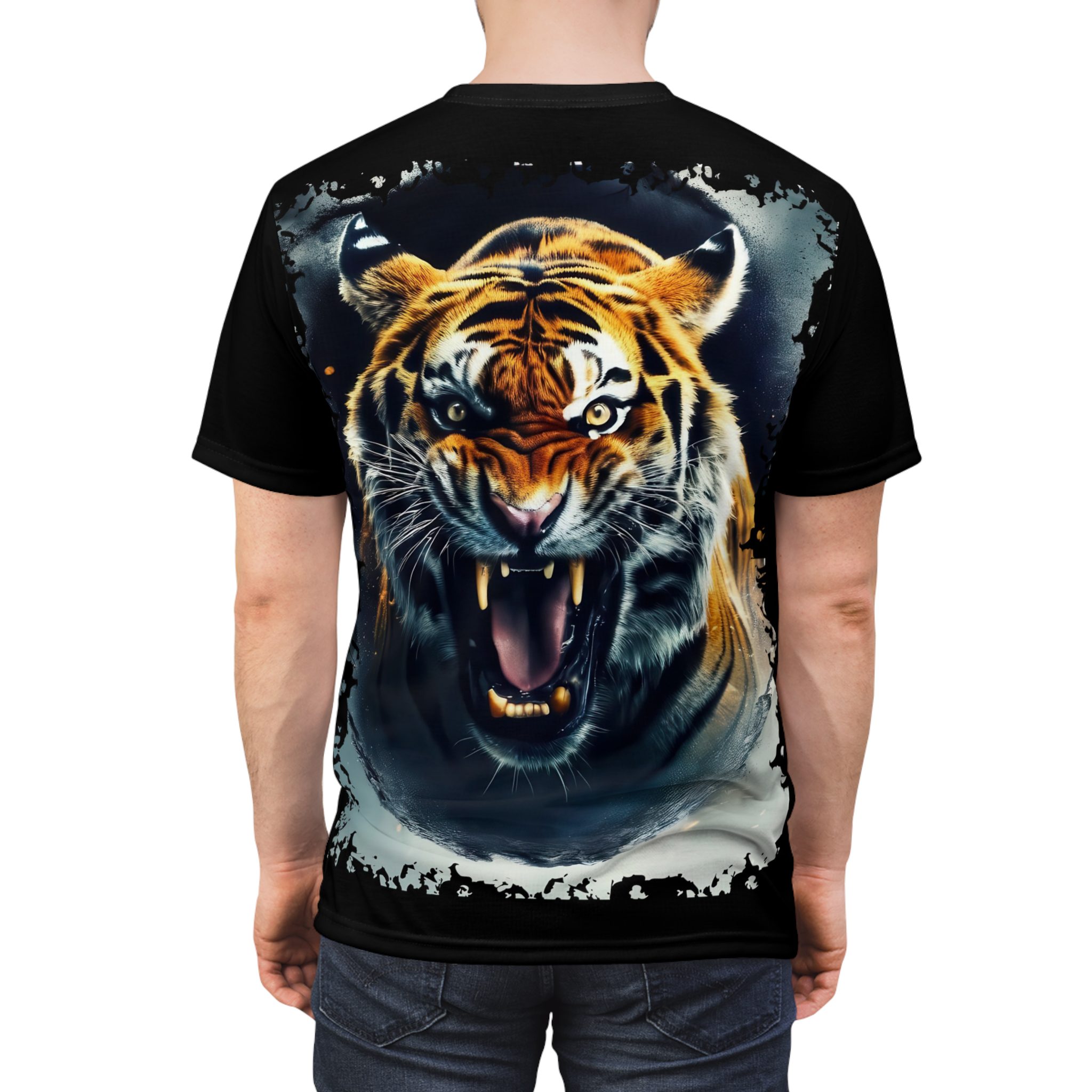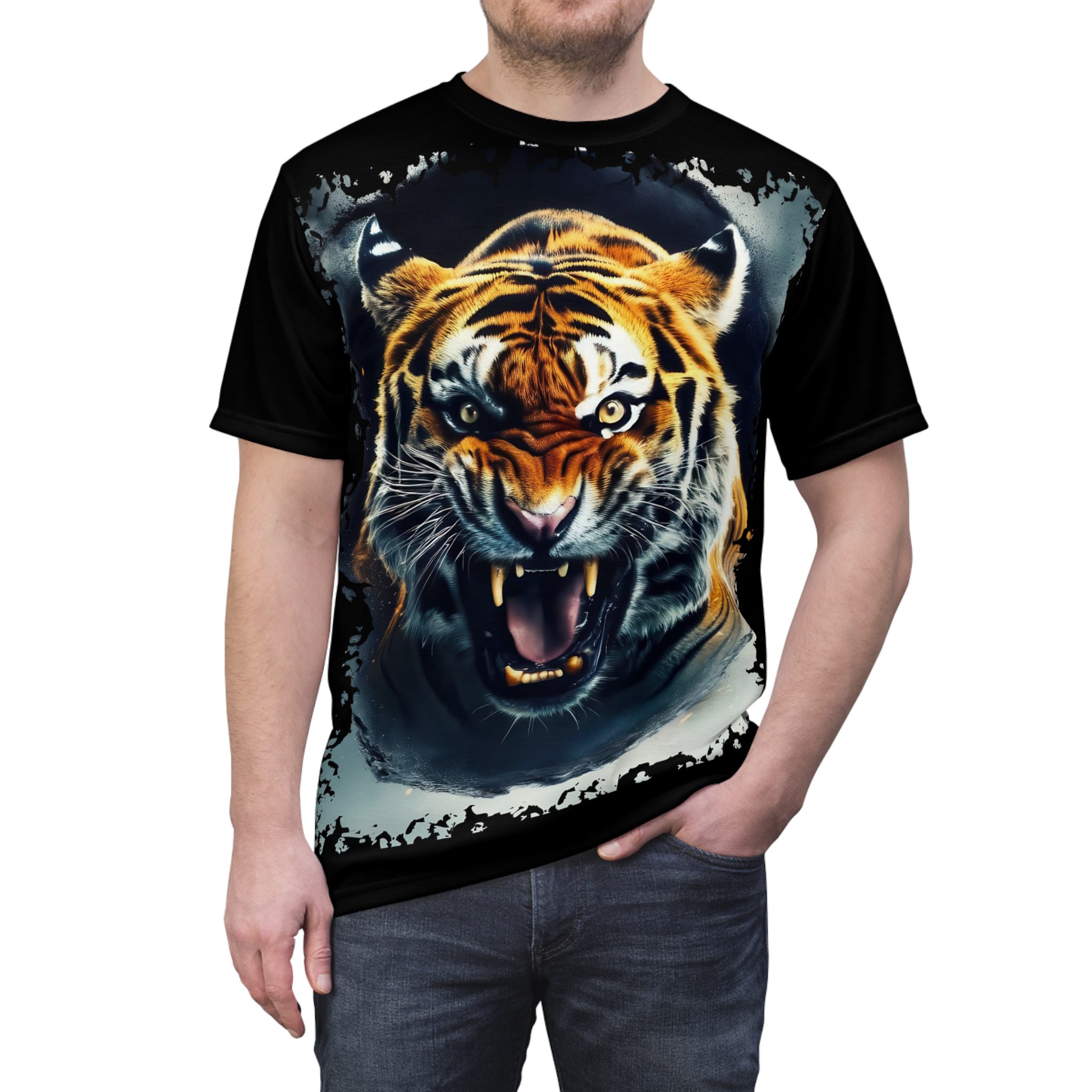 Bring out your wild side with this tiger t-shirt. Made of 100% polyester, this shirt is strong and durable, making it perfect for everyday wear. The ribbed knit collar with seam and shoulder tape provide structural support and stability. This unisex all over print tee runs true to size and comes in two fabric weight options. Tagless and assembled in the USA, this t-shirt is a great addition to any wardrobe, perfect for animal lovers and those who appreciate unique designs. Ideal for casual wear, lounging, and gifting on birthdays or holidays.