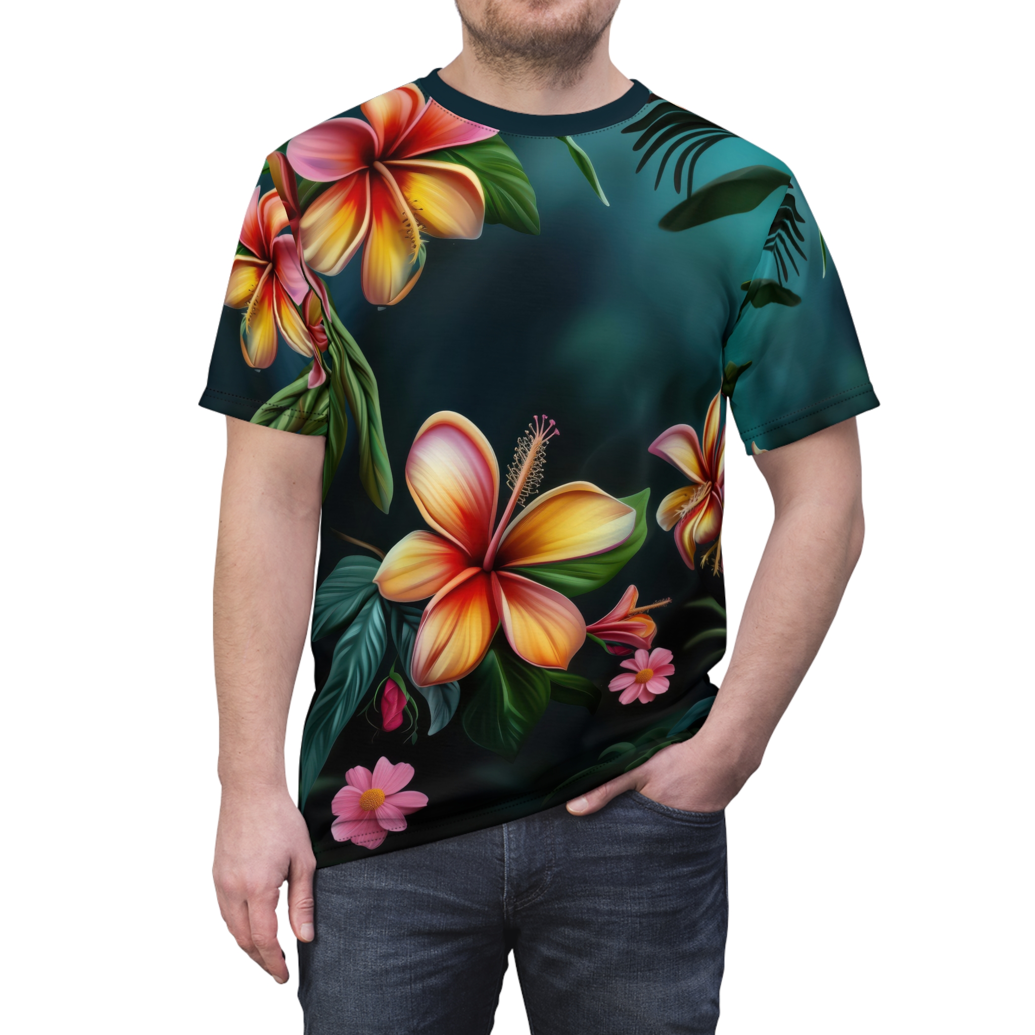 Tropical Floral Unisex Tee – Vibrant Nature-Inspired All Over Print T-Shirt, Perfect for Summer, Beach Days, Casual Wear, Holiday Gifts