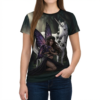 Slide into a scene of moonlit woods and hush—this all-over print tee wraps you in a quiet, magical moment. A dark-winged fairy kneels beside a solemn unicorn beneath shadowed trees, the artwork flowing edge-to-edge so the forest feels continuous across the front and back. Lightweight polyester gives the print vivid depth and a soft, drapey feel that layers easily under coats or stands alone for evenings when you want to carry a little mystery with you. Wear it to gatherings with fellow fantasy lovers, to midnight markets, or on long drives when you want a touch of story with you.