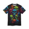 Vibrant Skull Graphic Unisex All Over Print Tee – Perfect for Halloween and Festival Style