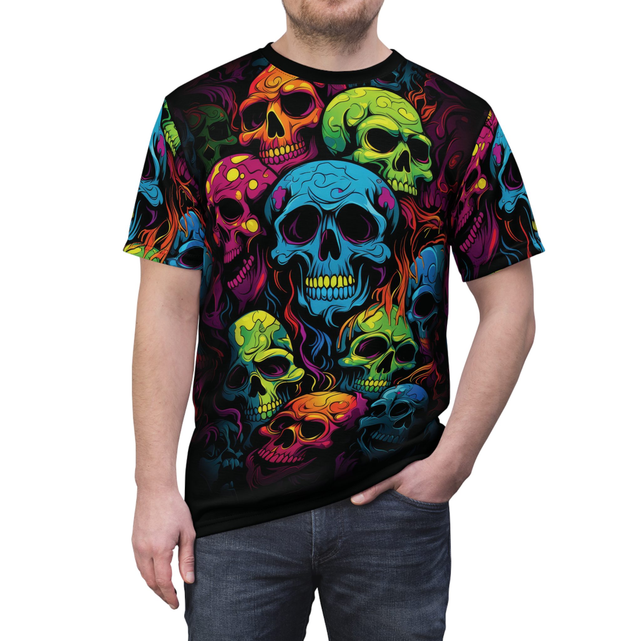 Unleash your bold style with our vibrant Unisex all over print Tee, perfect for those who dare to stand out. Featuring a stunning multi-colored skull design, this shirt radiates energy and creativity. Ideal for casual outings or festive gatherings, it fits seamlessly into any fashion-forward wardrobe.